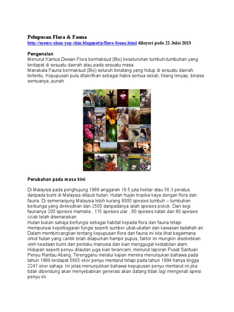 Punca Kepupusan Hidupan Flora Dan Fauna Di Malaysia Pdf Document