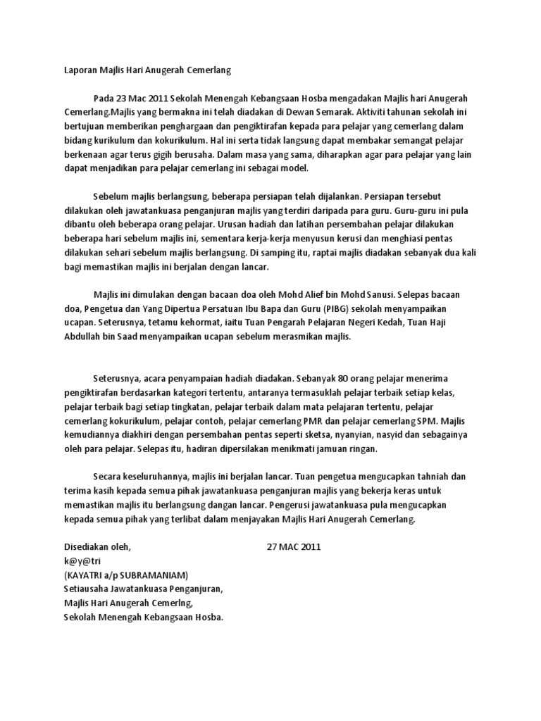Contoh Karangan Bahagian A Spm Kepentingan Majlis Anugerah Pelajar Cemerlang