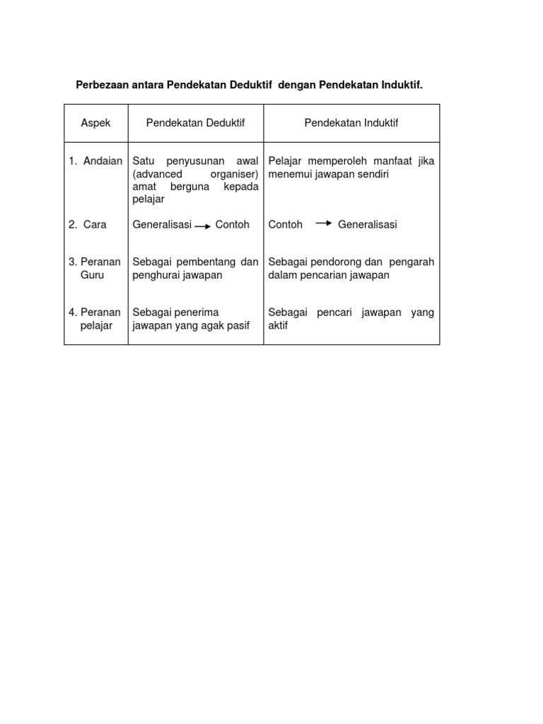 Perbezaan Antara Pendekatan Deduktif Dengan Pendekatan Induktif