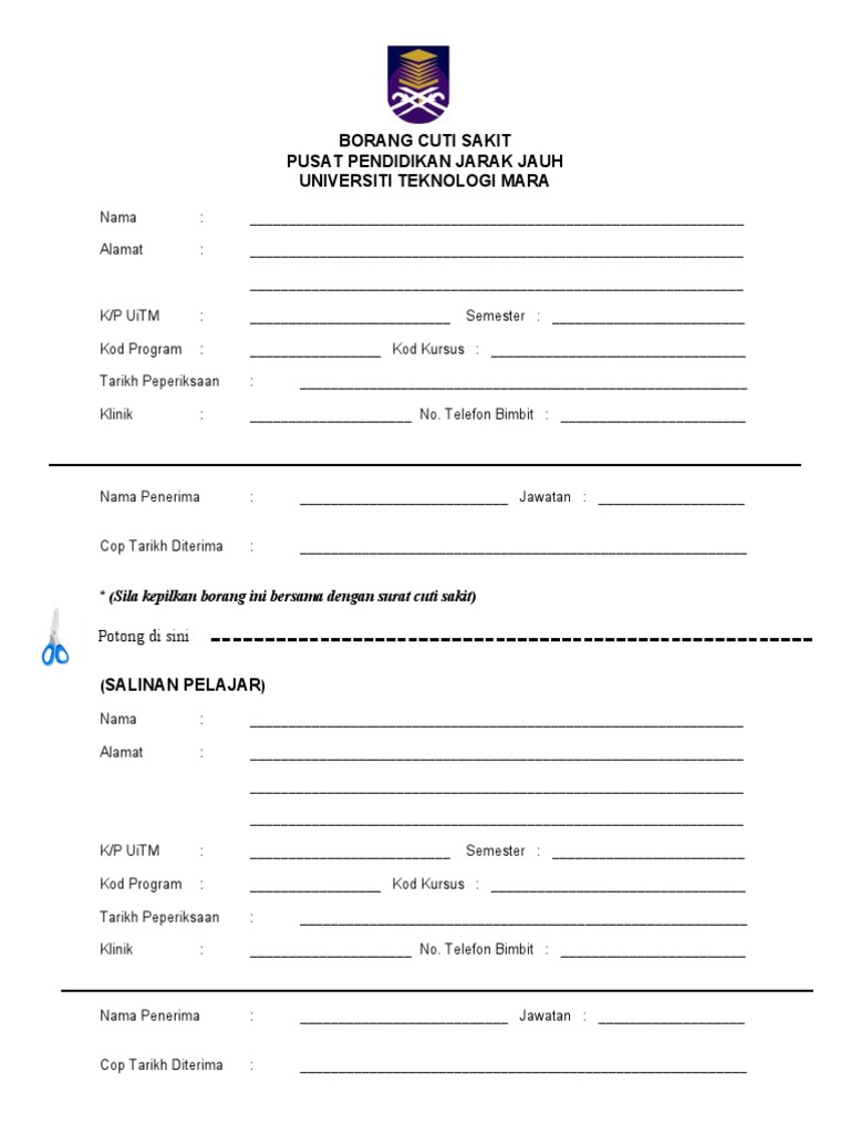 Borang Cuti Sakit Pusat Pendidikan Jarak Jauh Universiti Teknologi Mara